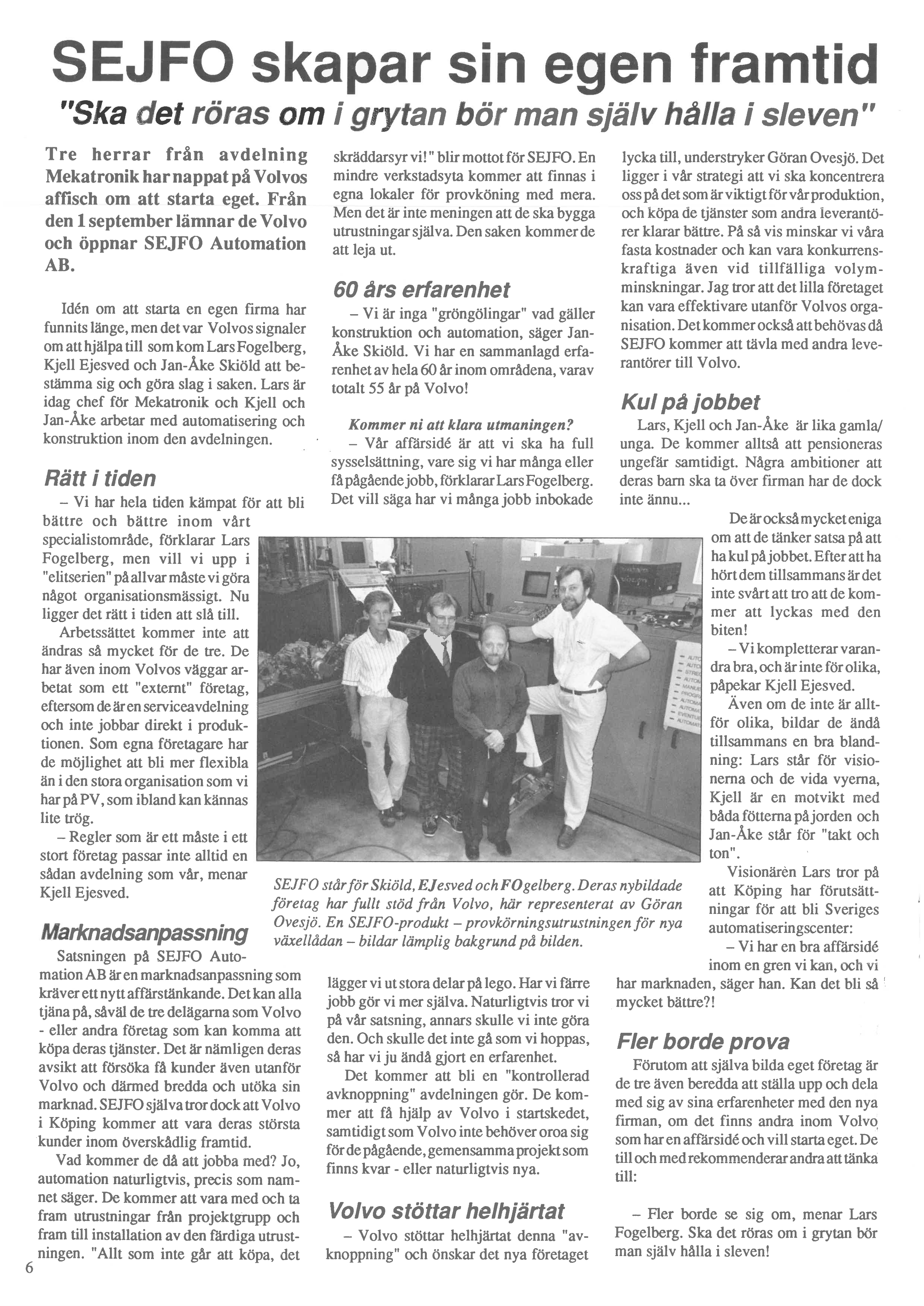 Med en bakgrund som automationsgrupp inom Volvo, grundades Sejfo 1991. Sejfos projektledare, konstruktörer och programmerare har ägnat det mesta av sin karriär åt produktionsteknik och automation.