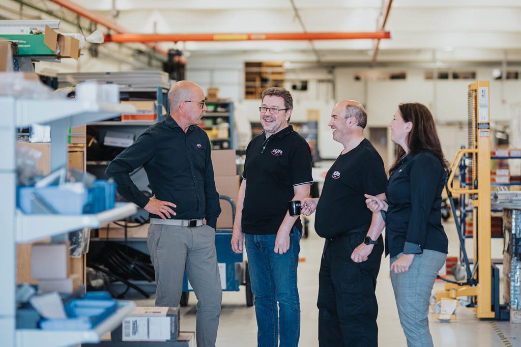 Sejfo Engineering utvecklar innovativa automationslösningar och specialmaskiner. Vi är ett bolag helt format efter våra kunders behov, med personal som har ägnat i stort sett hela sin yrkesverksamma karriär åt produktionsteknik och automation. Här finns alltifrån kreativa uppfinnare till kvalificerade maskinbyggare och strukturerade projektledare, vilket gör att vi alltid kan leverera avancerad specialutrustning till rätt pris i rätt tid. Efter leveransen hjälper vi till med service och reservdelar.